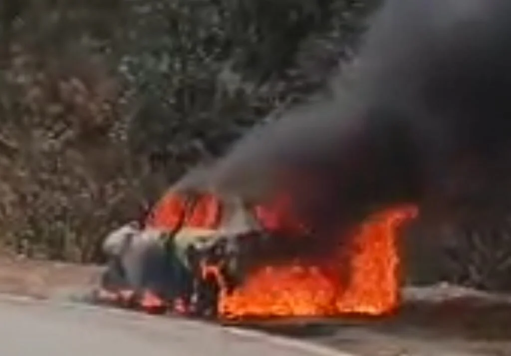 उत्तराखण्ड में नैनीताल के कैची धाम घूमने जा रहे पर्यटकों के वाहन में अचानक लग गई आग