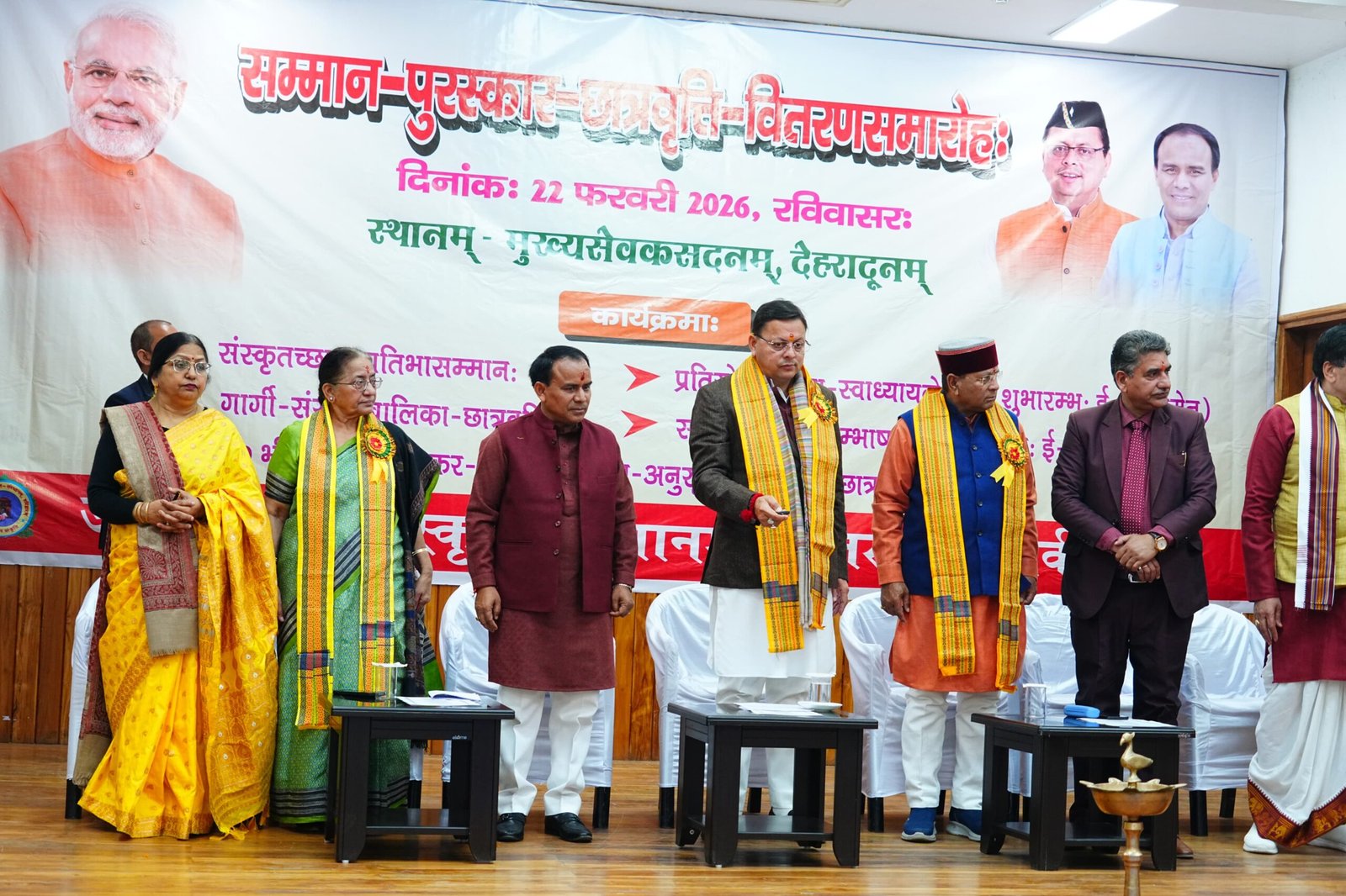 संस्कृत छात्र प्रतिभा सम्मान कार्यक्रम में पहुंचे सीएम धामी, देवभूमि उत्तराखण्ड की पहचान ऊँचे पर्वतों और ऐतिहासिक मंदिरों से ही नहीं, बल्कि ज्ञान और आस्था की भाषा देववाणी संस्कृत से भी है।