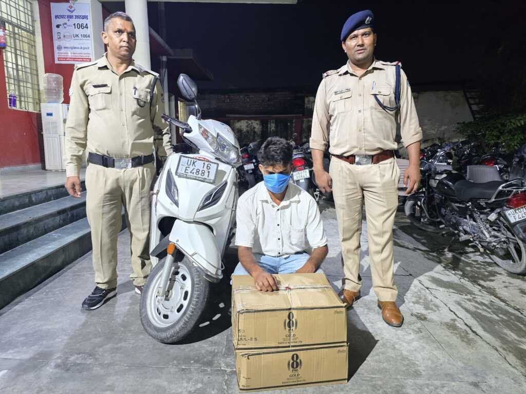 गठित पुलिस टीम के द्वारा दिनांक 21/07/2025 को रूटीन चैकिंग के दौरान कार्यवाही करते हुए अलग-अलग स्थानों, क्रमशः लेबर चौक के पास एक सफेद रंग की गाड़ी सुजुकी ब्रेजा संख्या UK07FT -4881 से 01 अभियुक्त विशाल रावत को 10 पेटी अंग्रेजी शराब रॉयल स्टैग, इंपीरियल ब्लू व्हिस्की तथा सेलाकुई स्थित पुरानी पुलिस चौकी के पास से 01 अन्य अभियुक्त शिवम कश्यप को स्कूटी संख्या UK016E-4881 से कुल 02 पेटी 8 PM GOLD व्हिस्की (96 पव्वे अंग्रेजी शराब) के साथ गिरफ्तार किया गया।